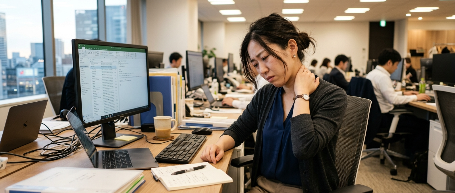 横浜で首こり・頭痛にお悩みの方へ|デスクワークによる首の緊張をストレッチで根本から解消